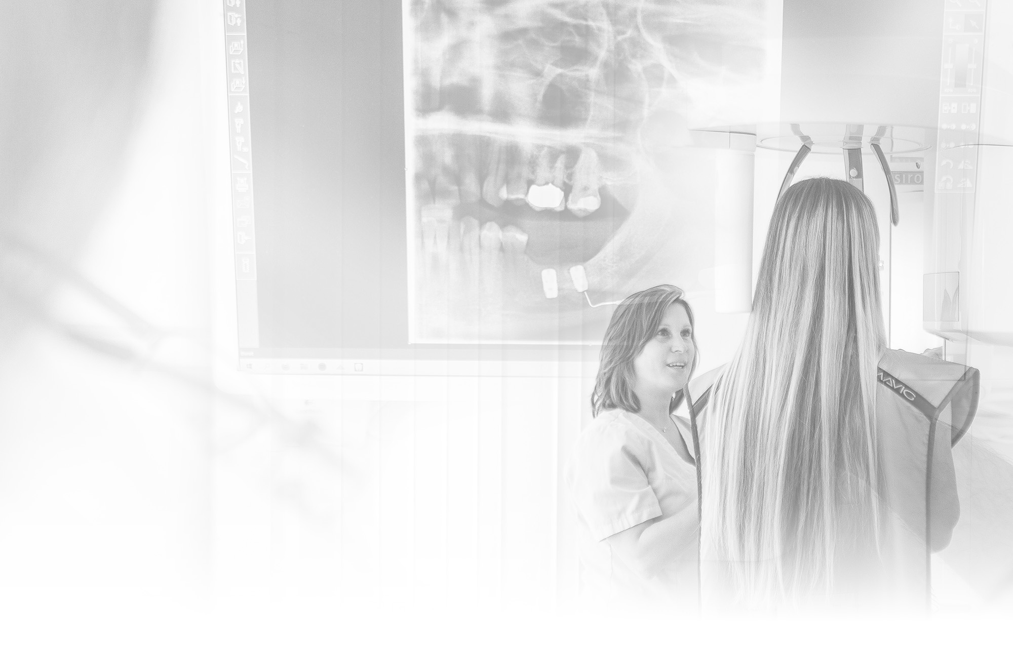 Ein 3D-Röntgenbild erfasst die Strukturen von Zähnen, Knochen und Nerven in der Tiefe. So können wir uns ganz genau orientieren und gehen sicher, dass uns nichts entgeht. - Hochauflösend, kontrastreich und präzise: